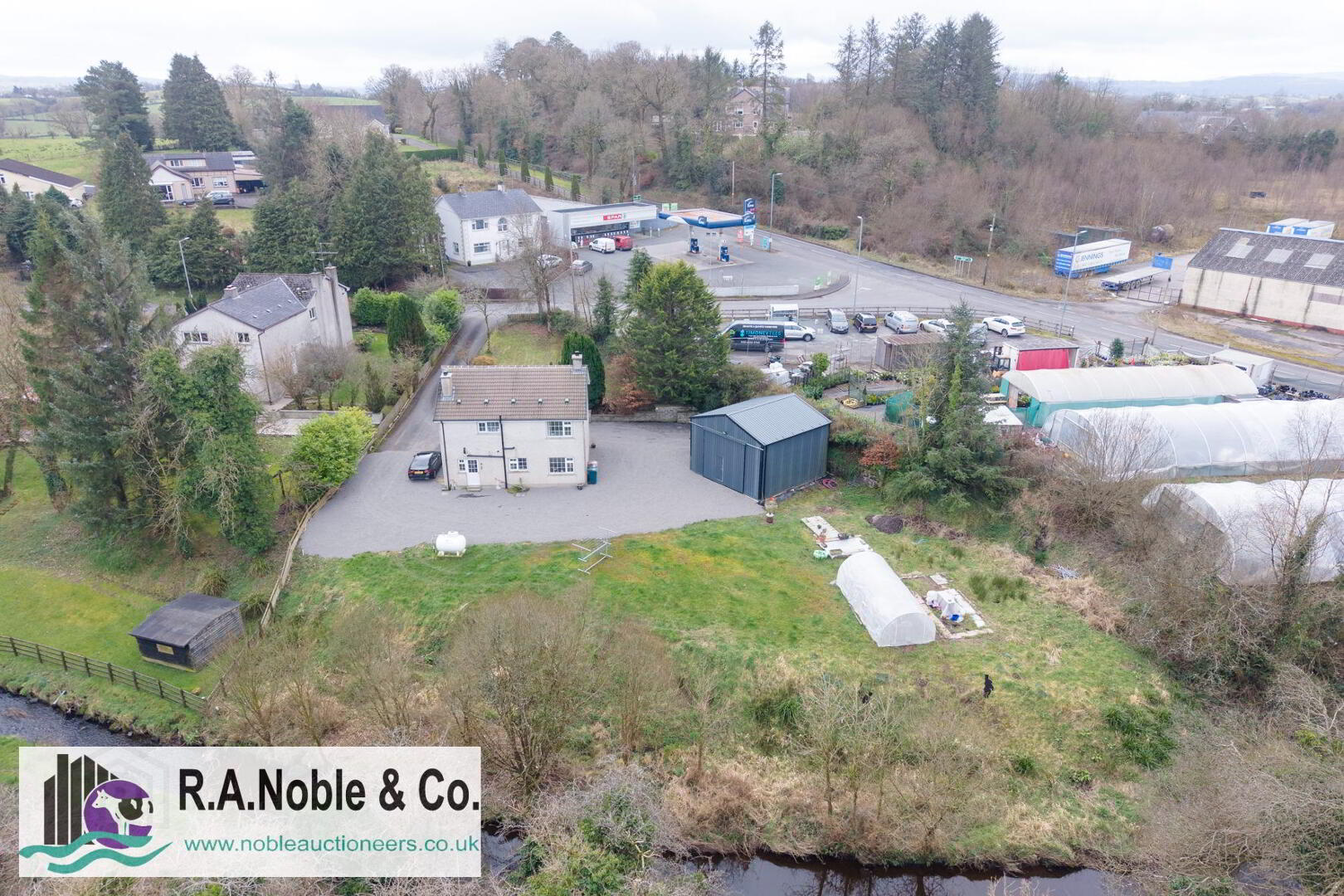 This four-bedroom detached home is set on a spacious private site with river frontage to the rear, offering a rare combination of privacy, outdoor space and countryside views. The property provides well-proportioned accommodation with a flexible layout, including a ground floor bedroom and office, making it suitable for modern family living or those requiring additional workspace. Externally, generous space surrounds the home along with a large steel portal-framed shed, while the rear of the site offers further scope to enhance and develop the outdoor area.