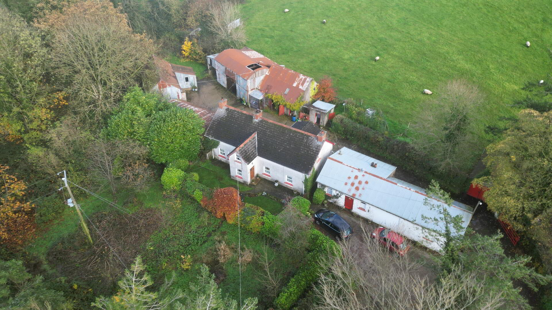 The residential element includes a traditional four bedroom one-and-a-half-storey Farmhouse, accompanied by a range of outbuildings that are used as a craft workshop and for dry storage.