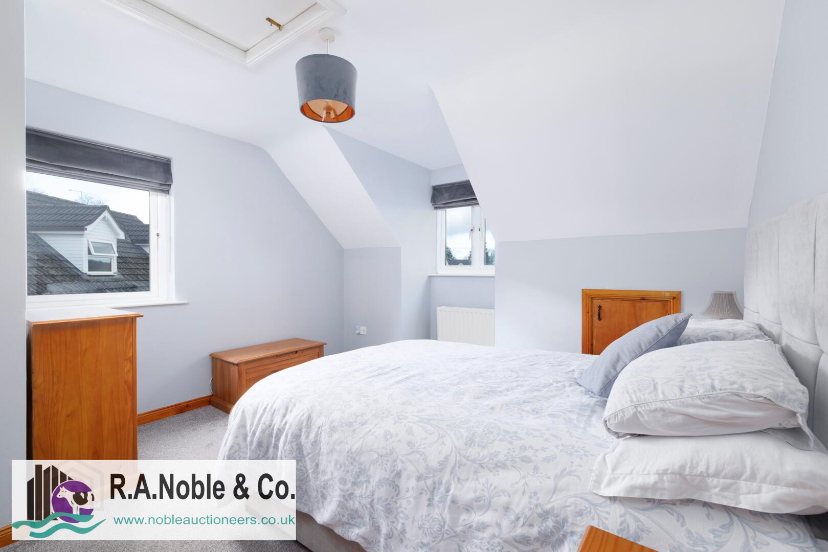 The main living room features an elegant open fireplace with a polished granite hearth, an attractive focal point that adds warmth and character to the home. The adjoining dining room and kitchen have an open plan design suited for modern living, complete with an integrated fridge-freezer and dishwasher that provide convenience and a sleek, streamlined look. This well-designed home offers three generously sized bedrooms, making it ideal for families. The master bedroom benefits from its own private ensuite bathroom, adding comfort and convenience. A versatile ground-floor bedroom provides flexibility for modern living and can easily be used as a home office, or guest room.
