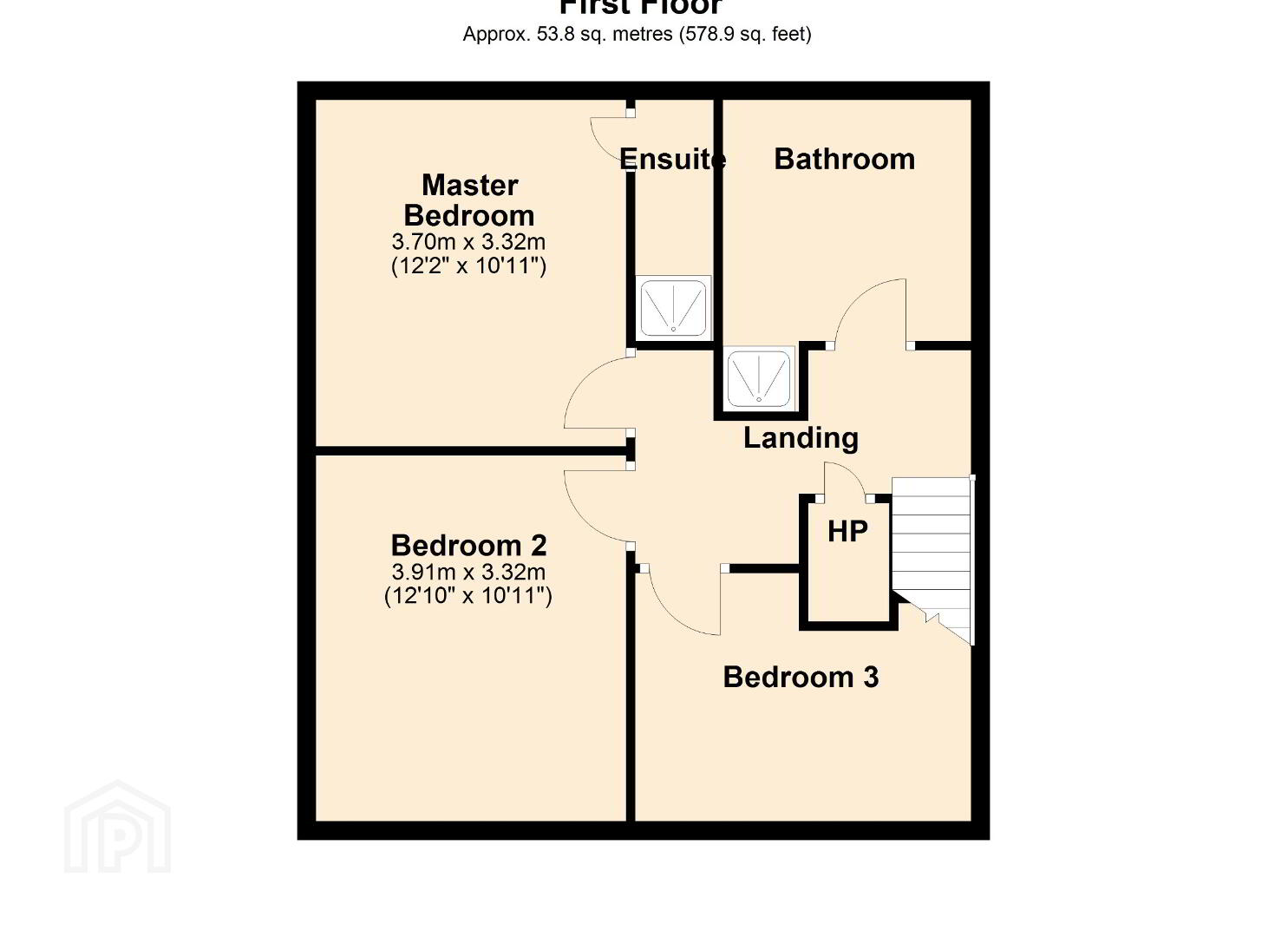 Bedroom 2: 3.9m x 3.3m Bedroom 3: 3.7m x 2.7m