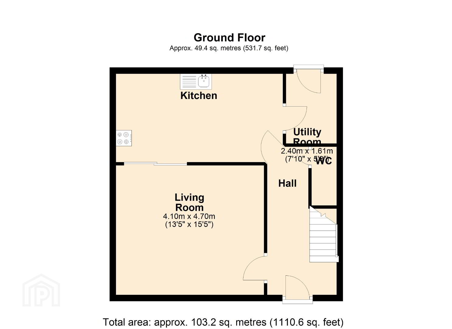 Utility Room: 2.4m x 1.6m WC: 1.9m x 0.9m