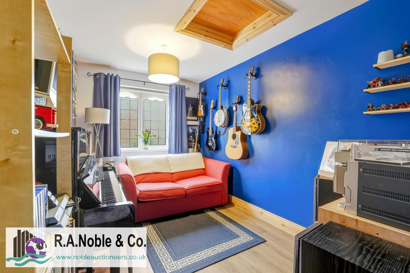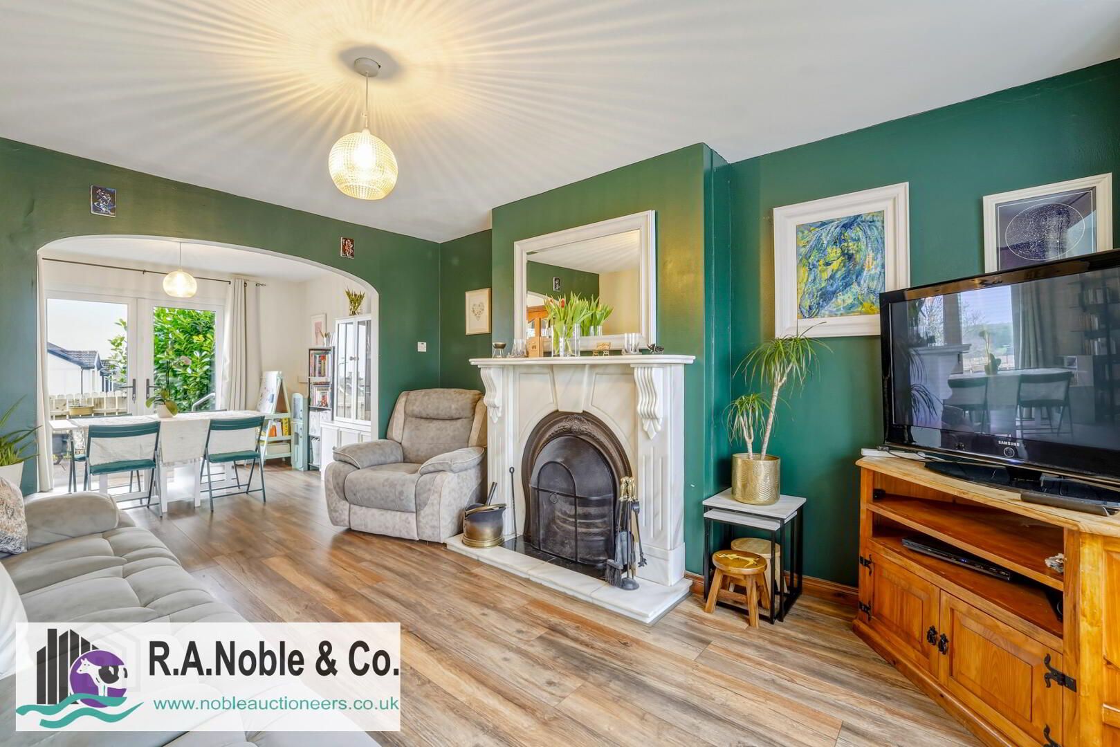 The Main Living room benefits from a large bay window to the front, patio doors leading to the rear garden, and a cosy open fire in the sitting room, creating a warm and inviting living area.