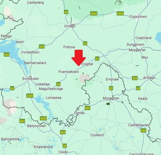 These lands are located on the Shantonagh Road on the outskirts of Fivemiletown. The immediate vicinity is a peaceful rural setting yet the property is just a few minutes drive from the Main A4 road connecting Enniskillen to Belfast and the village of Fivemiletown itself. The property enjoys panoramic views of The Clogher Valley and overlooks Aughentaine Presbyterian Church.