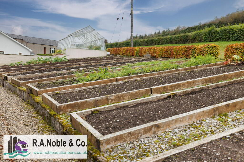 • Expansive gardens featuring a patio area with water feature, raised vegetable beds and a greenhouse