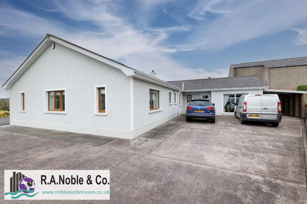 Set in a tranquil rural setting with sweeping country views, this impressive 4 bedroom detached bungalow offers spacious, flexible accommodation on a generous site with beautifully maintained gardens , extensive outbuildings, and high-quality finishes throughout.