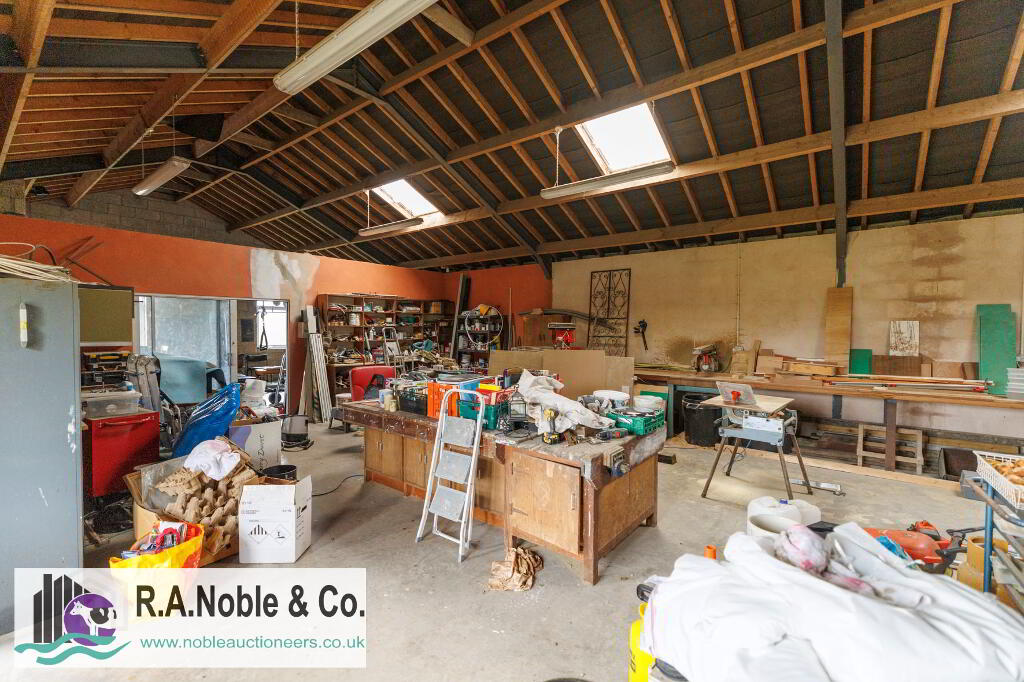 • Large detached workshop/garage with roller shutter doors and insulated cavity walls– perfect for business use, storage or hobbies