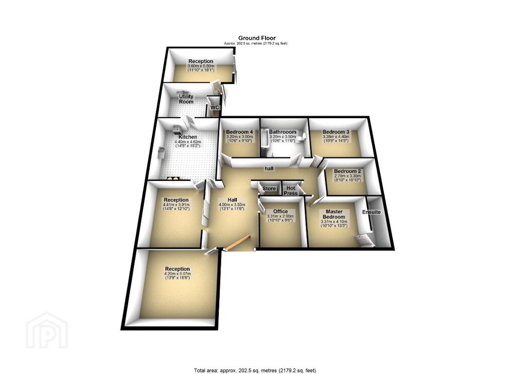 Bedroom 4: 3.5m x 3.2m Office: 2.9m x 2.7m Hot Press: 1.1m x 1.6m