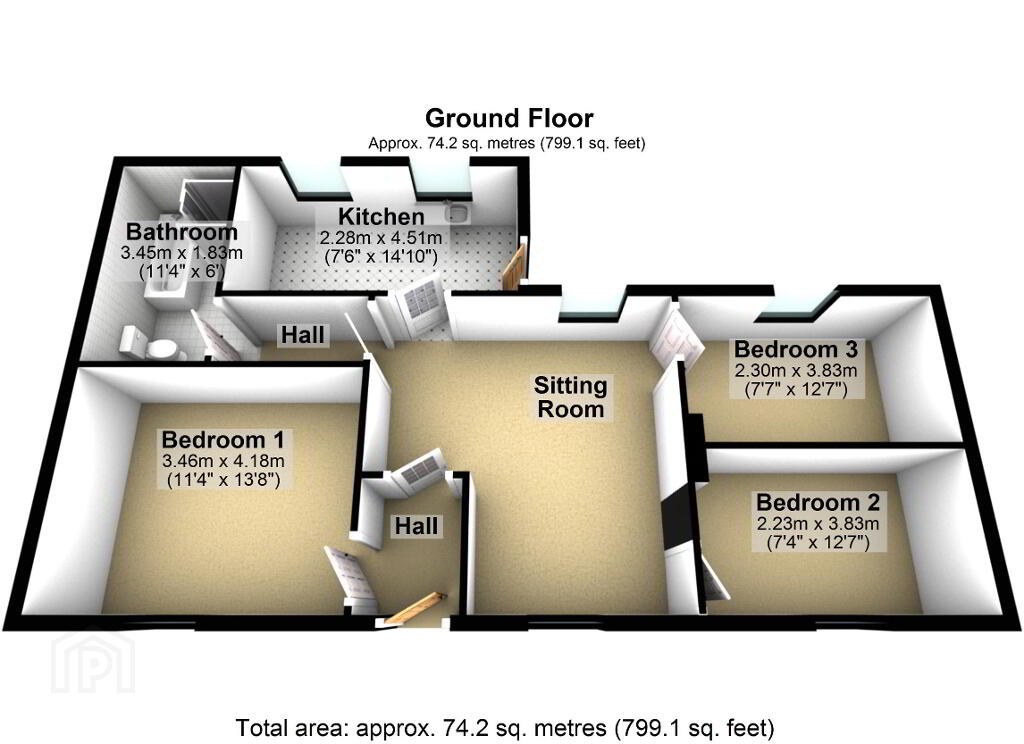 • Bedrooms: Three well proportioned bedrooms offering flexibility for family living, or home office use.