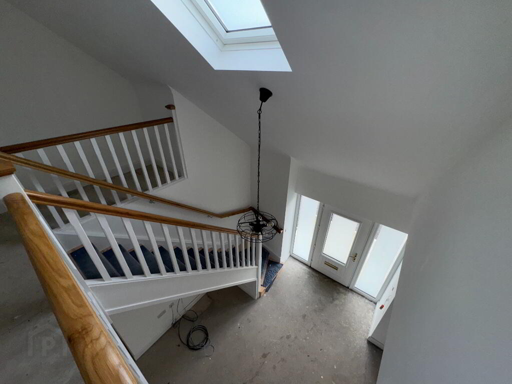 The impressive hall area, with a double height ceiling, draws you through double doors into a stunning main reception room. Here, panoramic views of Drumhirk Lough create a breathtaking backdrop with the connecting open-plan kitchen, this space is perfect for both relaxed evenings and entertaining guests. A spacious utility room and a separate coat room provide excellent practicality for everyday family living.