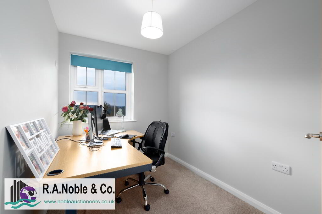 Upstairs, the master bedroom offers excellent storage with built-in sliding wardrobes as well as a private ensuite equipped with a POD enclosed power shower . The main bathroom also includes a POD enclosed electric shower with an additional downstairs WC adding further practicality for family living. The versatile third bedroom can easily serve as a comfortable home office, guest room, or nursery.