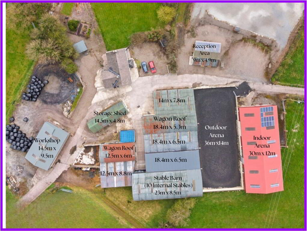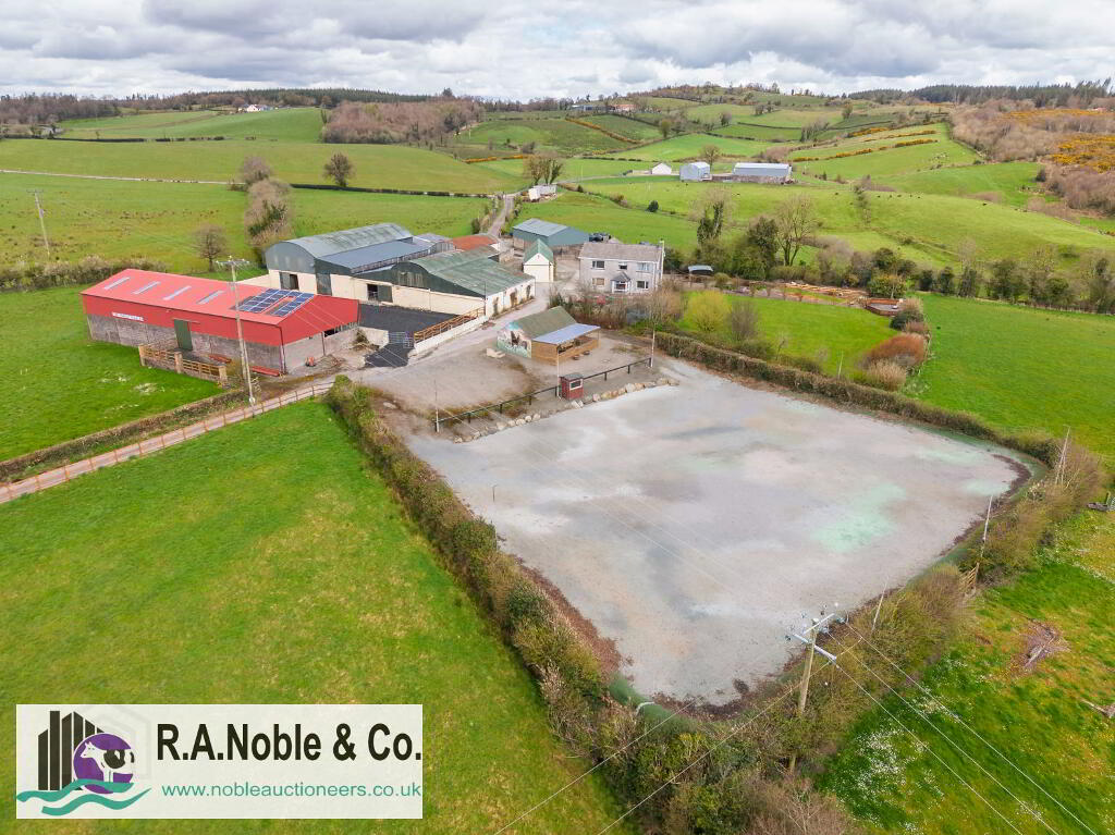 This impressive C. 40 acre compact residential farm comprises of a well equipped holding with a large offering of agricultural and equestrian facilities. The Lands are held in a compact block surrounding the farmyard with extensive hardcore/concrete laneways throughout facilitating ease of travel to the central farmyard. Other highlights include solar panels in addition to both mains/borewell water supplies.